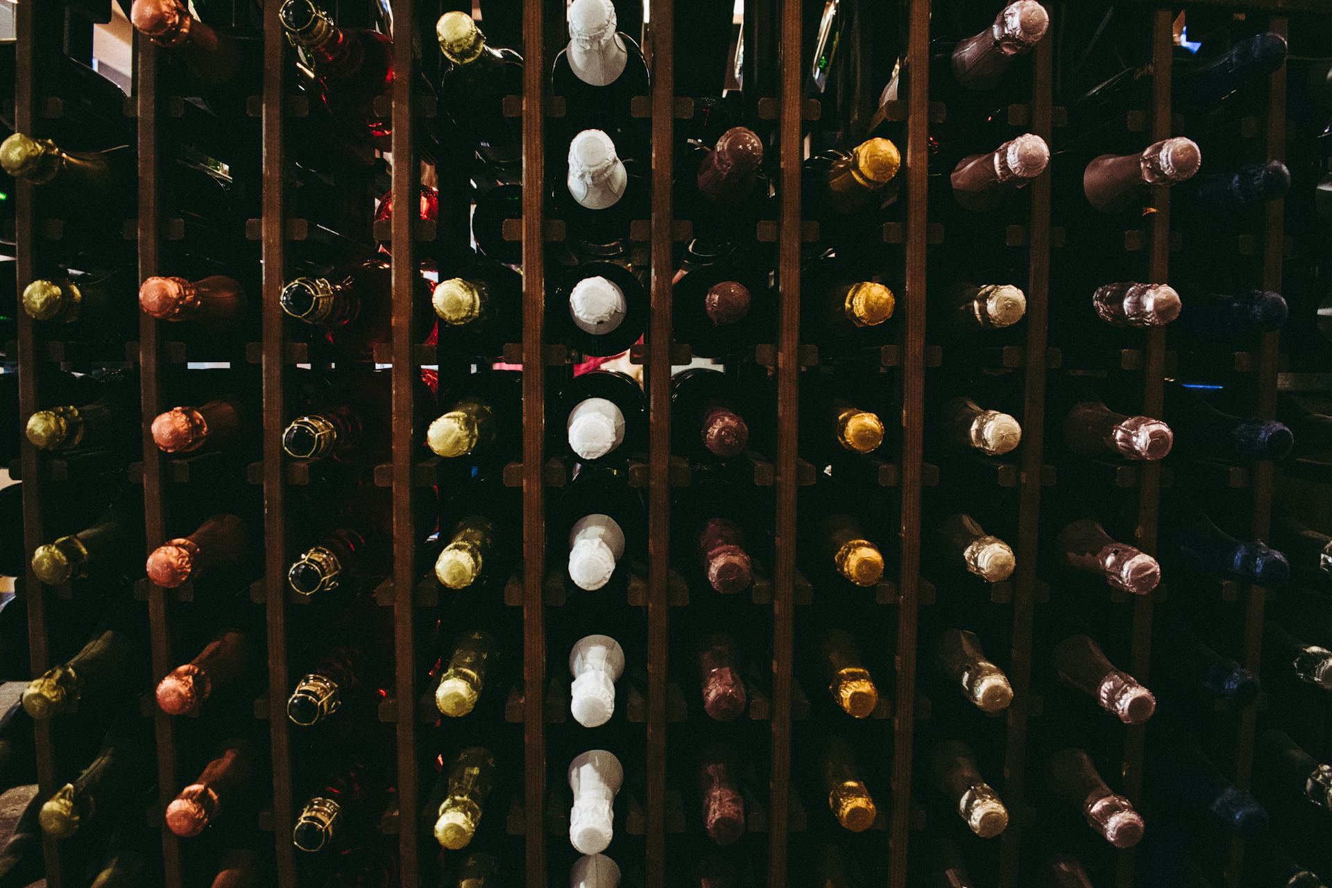 Hvis du har vine med naturkork, skal de ligge vandret, så proppen holdes fugtig. Flasker med skruelåg kan derimod sagtens stå oprejst.